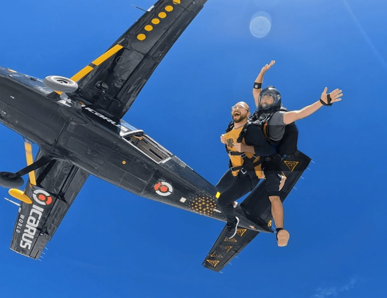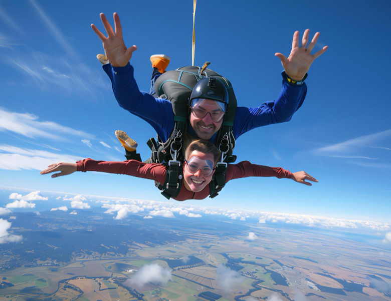 El salto tándem consiste en lanzarte desde un avión, sujeto a un instructor certificado mediante arnés. Solo necesitas una breve capacitación previa; luego subirás a 10.000 pies y experimentarás una caída libre a más de 200 km/h.